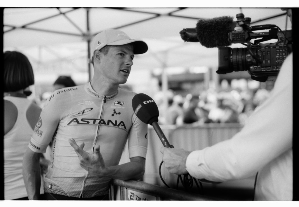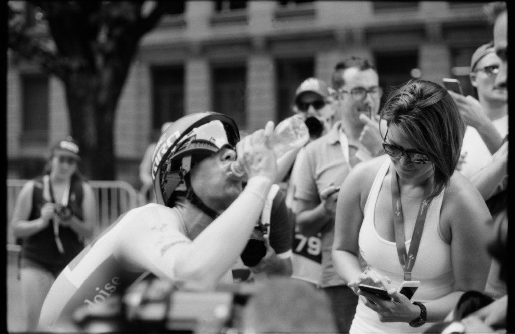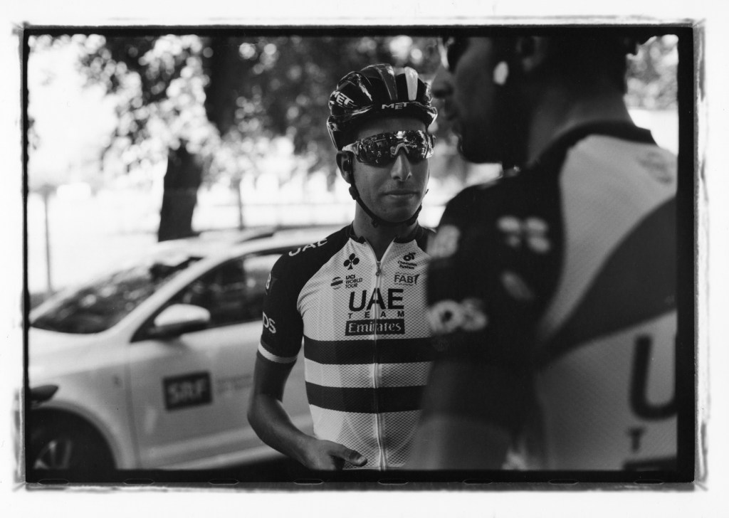 d. Da schoss mir die Idee wie ein Geistesblitz durch den Kopf; wieso nicht meine analoge M6 Kamera mit nehmen?! Damit würde ich, wie sonst auch auf Reisen, versuchen Portraits von Menschen ein zu fangen. An einem Sportanlass wie der Tour de Suisse gibt es eine ganze Armada von nationalen und internationalen Sport-Fotografen. Jeder von ihnen versucht für die Sportberichterstattung möglichst DEN entscheidenden Renn-Moment einzufangen.