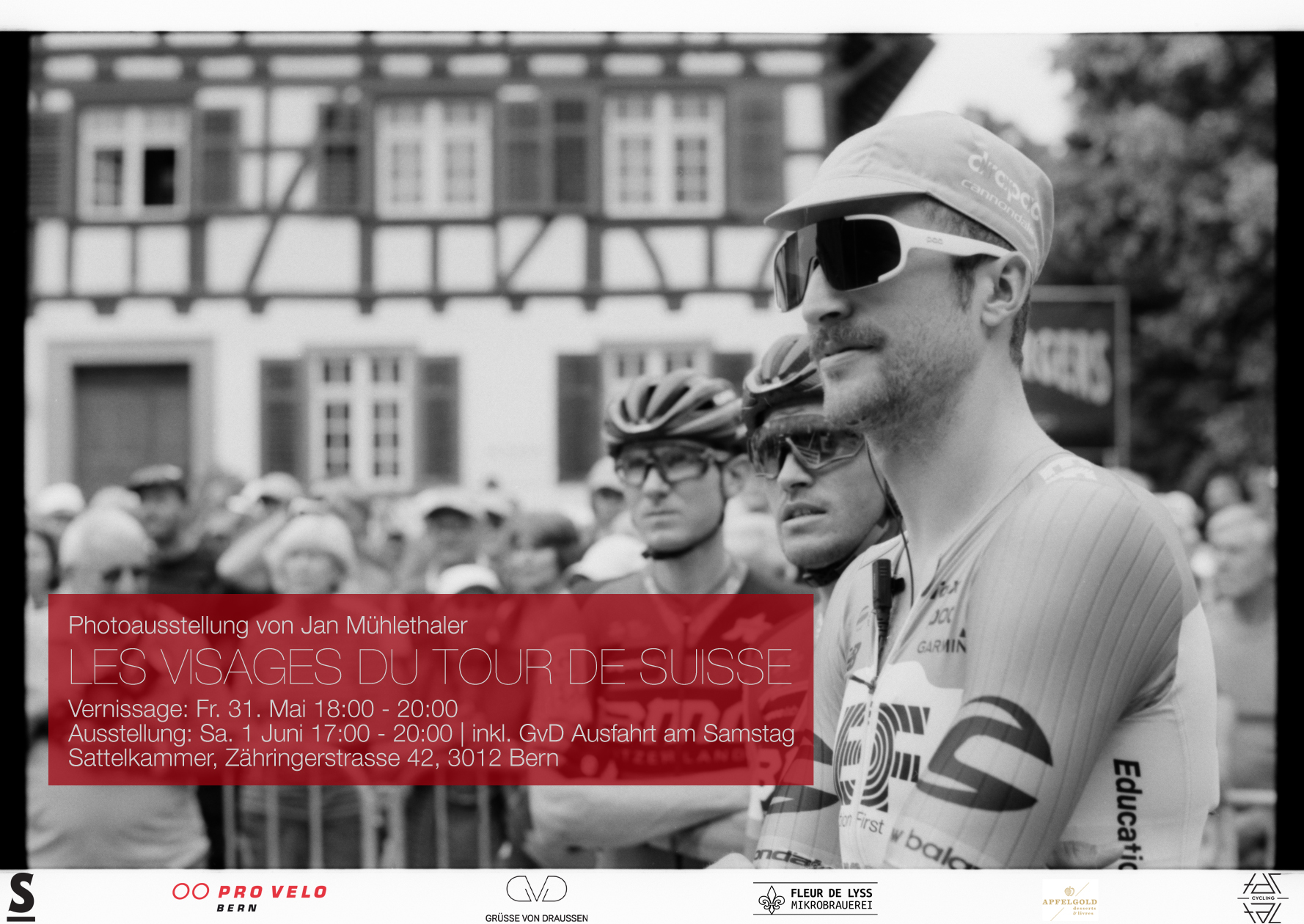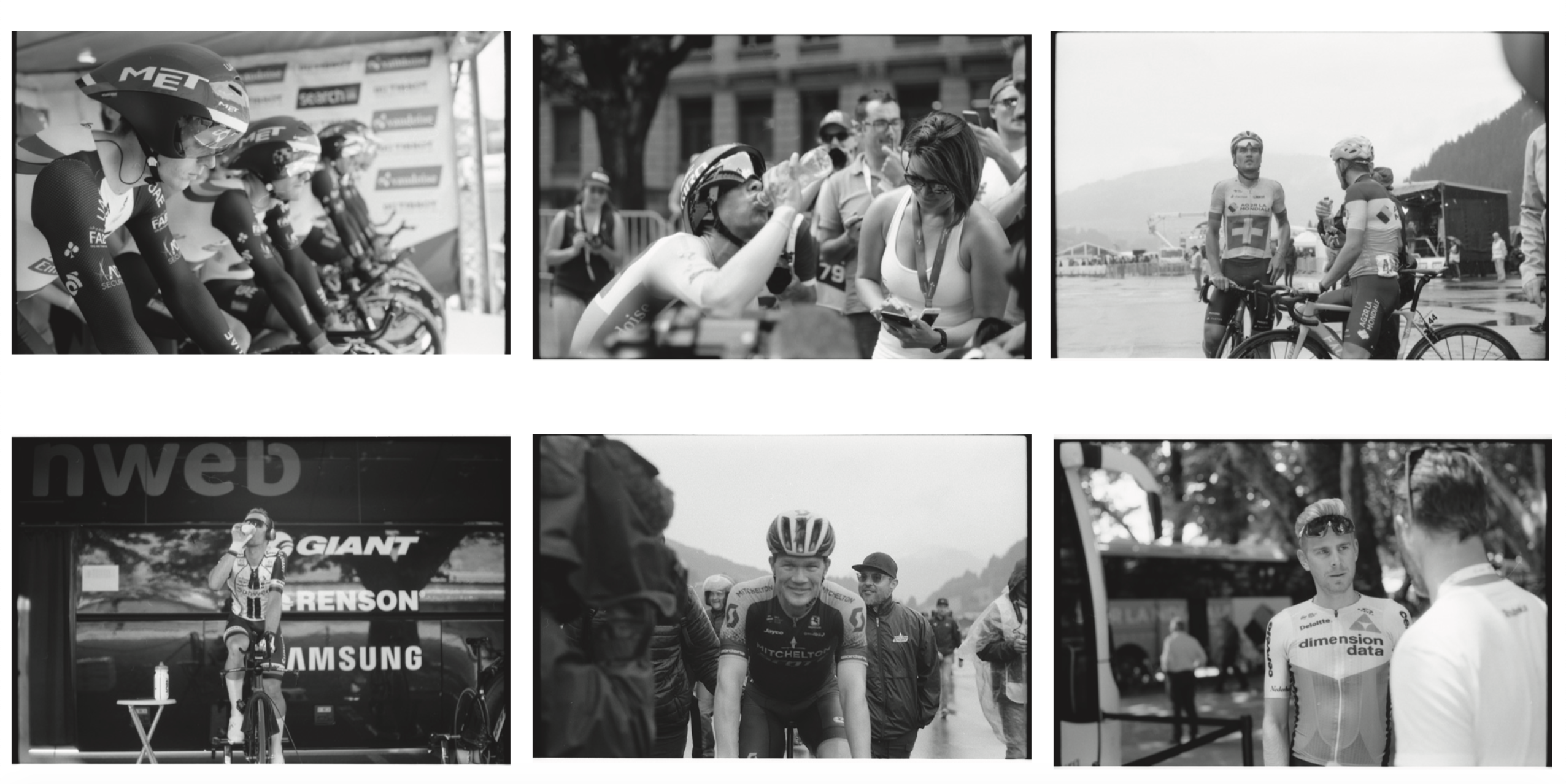 Jan Mühlethaler begleitete die Tour de Suisse neun Tage lang mit seiner analogen Fotokamera aus nächster Nähe. Dabei entstanden schwarz-weiss Portrait-Fotografien der Radfahrer, der Zuschauer oder des Renn-Staffs.